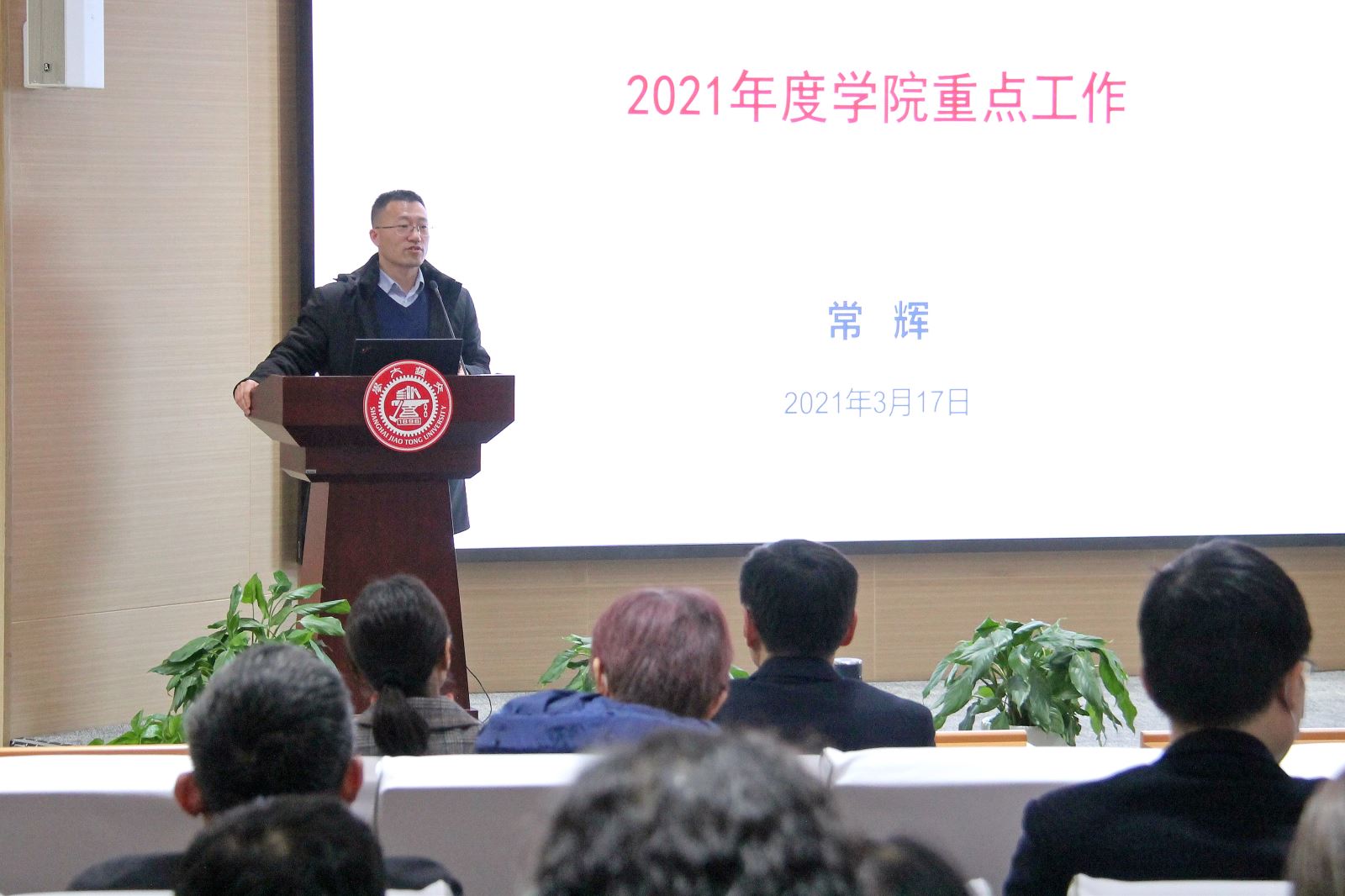Chang Hui, Executive Associate Dean of SFL, introduced the key points of this year's work, and laid out the work plan from the aspect of comprehensive work, talent training, scientific research, teaching staff construction and social services. In 2021, SFL will endeavor to link with national and university strategies, further consolidate disciplinary characteristics, incubate landmark achievements, build a three-dimensional discipline system, and improve SFL’s management and service. Furthermore, SFL aims to strengthen teaching quality construction, do a good job in constructing first-class majors and courses, applying for projects and awards, increasing investment in research, strengthening the development of journals, and ensuring the publication of high-level research papers. With the policy of “recruiting and cultivating simultaneously”, SFL will also strengthen teaching staff construction, especially teachers with tenures. At the same time, SFL will continue to promote the cooperation with enterprises and public institutions, expand social influences, and do a good job in social services.