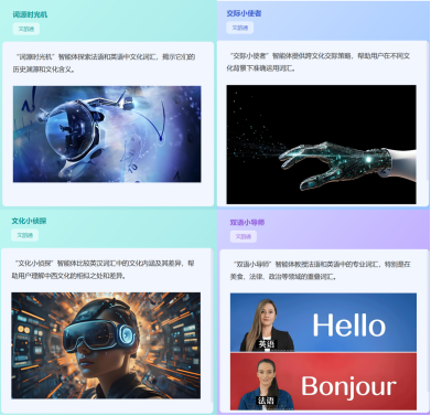 "Culture and Language Link" focused on language and cultural learning. Among them, "Etymology Time Machine" explored the historical origins of words. "Cross-Cultural Communicator" provided strategies for cross-cultural communication. "Bilingual Tutor" taught professional vocabulary, and "Cultural Detective" compared the cultural connotations of English and Chinese words.