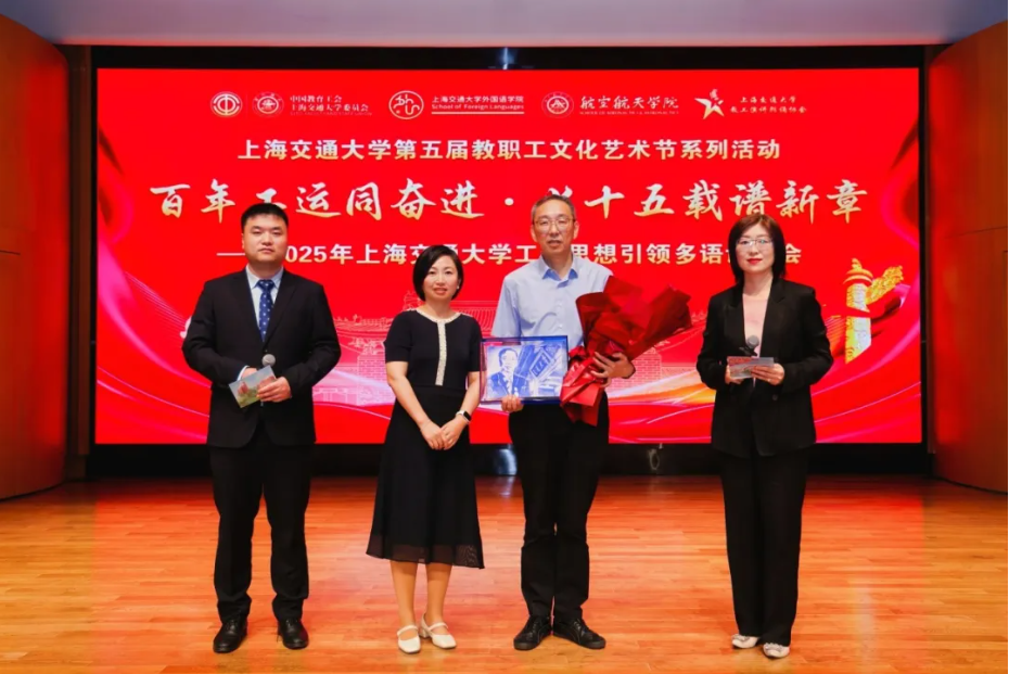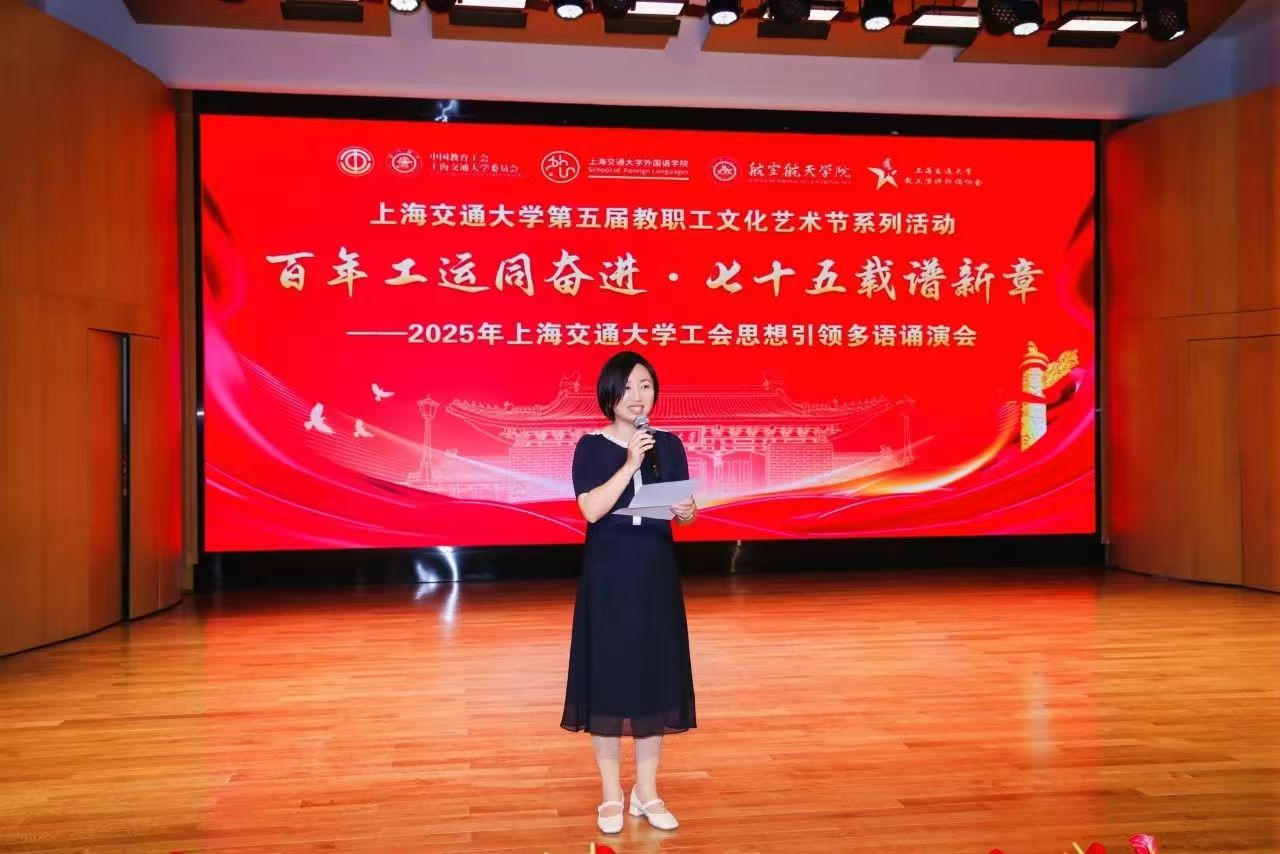On the afternoon of May 30th, the 2025 SJTU Multilingual Recital “100 Years of Labor Movement - 75 Years of New Chapters” took place in the Concert Hall of the School of Humanities. The event was co-hosted by the Trade Union of the School of Foreign Languages, the Trade Union of the School of Aeronautics and Astronautics, and Shanghai Jiao Tong University Faculty Association for Speech and Recital.